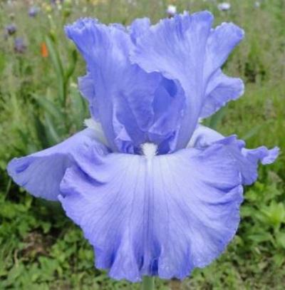 Wicked Cool-(Jim Hedgecock-2012)-Tall Bearded Iris-35 Inches Tall-Medium Bloom Season-Heavily ruffled and fluted medium blue with near white areas around white beards turning yellow in throat. Excellent, overlooked blue from Jim's lines.